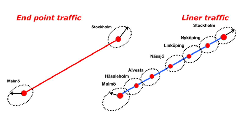 linjeupplägg och inte som nu i ändpunktstrafik.