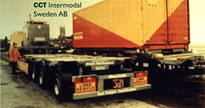 Svar. British Rail testade CCT och med mycket intressant och bra resultat. Den CCT bil som fanns flyttas över till England. Men England har varit baserat på 30 foots continer varför en speciell version av en trailer som hanterar 30 foots enheter byggdes upp. Den var självförsörjade på energi varför vilken dragbil som helst kunde hantera trailern.