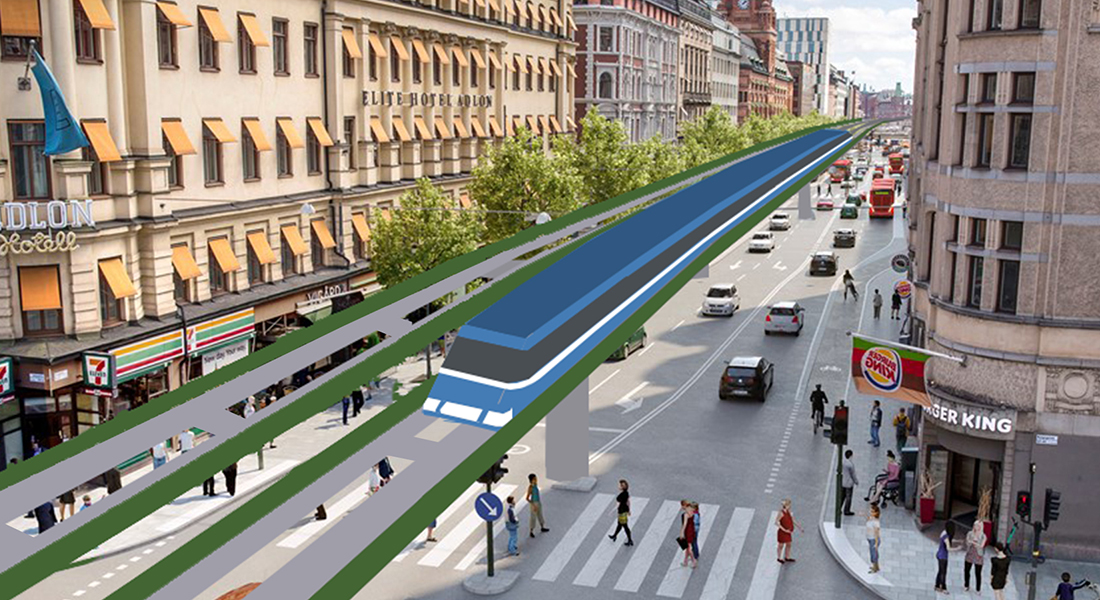 Vi introducerade förslaget till stadsbanor magnetuppburet, friktionsfritt och tyst trafik!